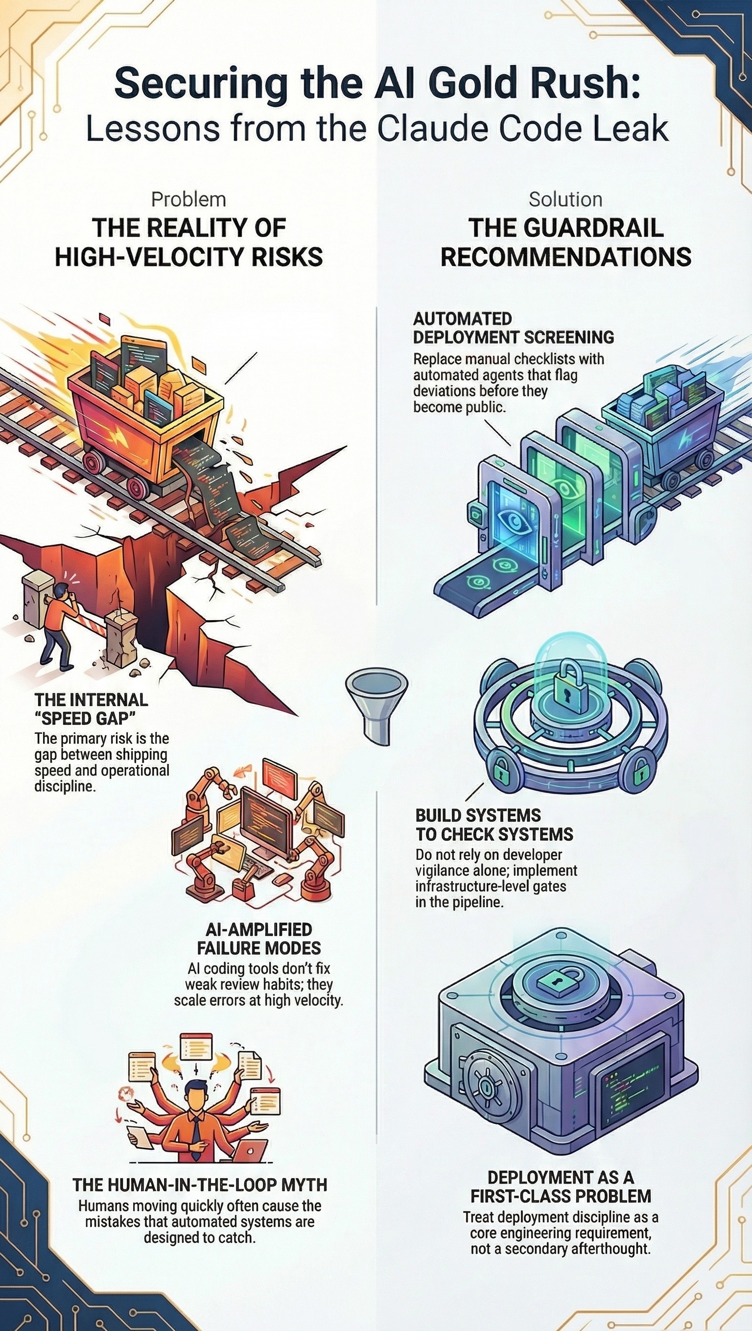 A packaging mistake shipped a half-million lines of TypeScript to the public. No malicious actor, no sophisticated exploit. Just speed, and a gap where a guardrail should have been.